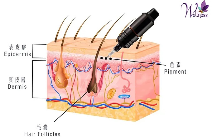 SMP技術主要像紋身一樣,透過微針的方式在頭皮上逐點逐筆上色,